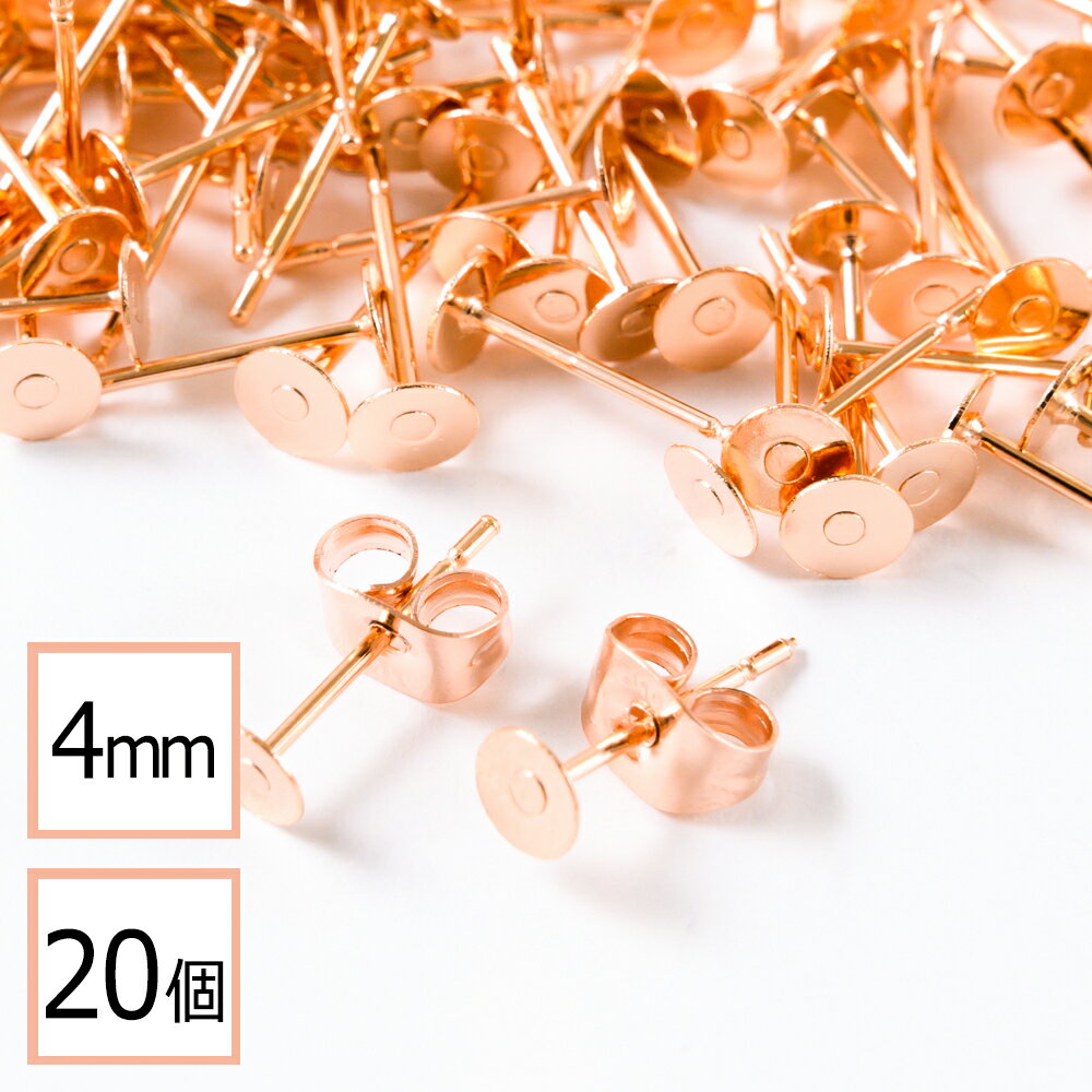 【サージカルステンレス 316】 4mm ピアス ピンクゴールド 平皿タイプ×ピンクゴールドキャッチセット 20個 (10ペア) 金属アレルギー対策 アクセサリーパーツ 問屋 専門店
