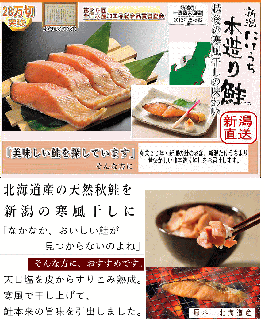 【月間優良ショップ】【寒風干し鮭】本造り鮭 2切...北海道産 天然 秋鮭 を 新潟の伝統製法 寒風干し 鮭 中塩 冷凍便