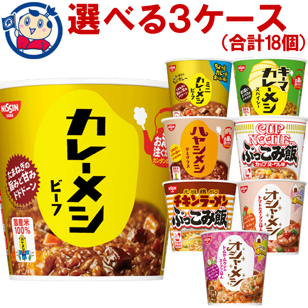 送料無料 カップライス 日清 カレーメシ 選べる3ケースセット (合計18個)