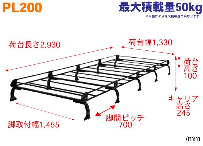 メーカー希望小売価格はメーカーカタログに基づいて掲載しています適合車種 車種 型式 年式 ルーフ ハイエースバンH200系H16.8~標準ルーフ(標準幅) 商品名 精興工業株式会社 TUFREQ/タフレック ルーフキャリア 品番 PL200 素材 黒塗装スチール 長さ ロング 取付脚 10本 備考 ・普及実績NO1。