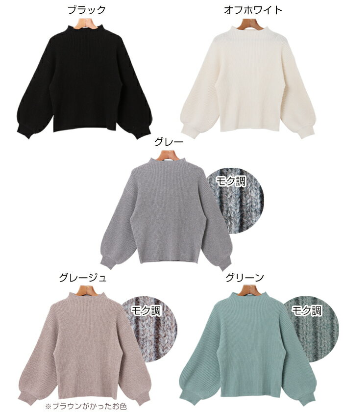 【宅配便A】【送料無料】ボトルネック ボリューム袖 リブ ニット トップス レディース フェミニン バルーン袖 M/Lサイズ 春 秋 冬【メール便NG】