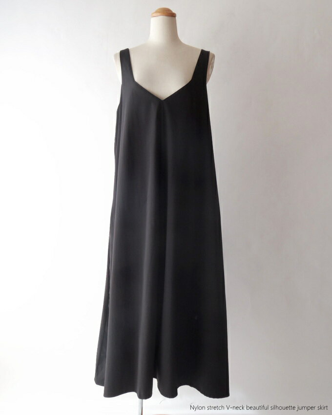 ナイロンストレッチVネックジャンパースカート Aライン マキシ丈 ミセス ファッション 50 代 チュニック 40代 60代 70代 春秋冬 女性 レディース アラフォー 母の日 プレゼント