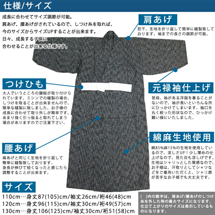 綿麻しじら織り子供浴衣(単品販売) 大人気の男の子浴衣の単品販売を開始しました。
